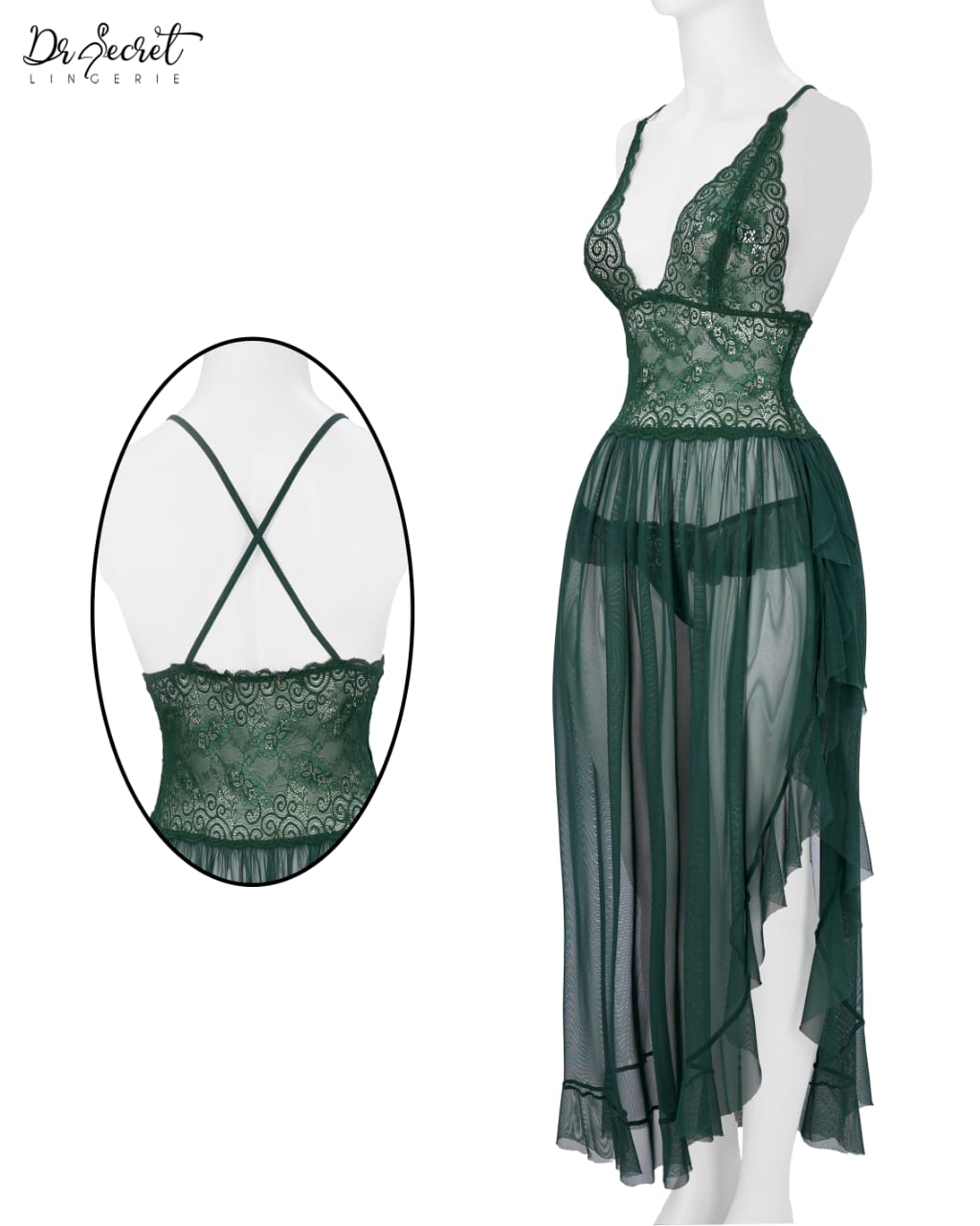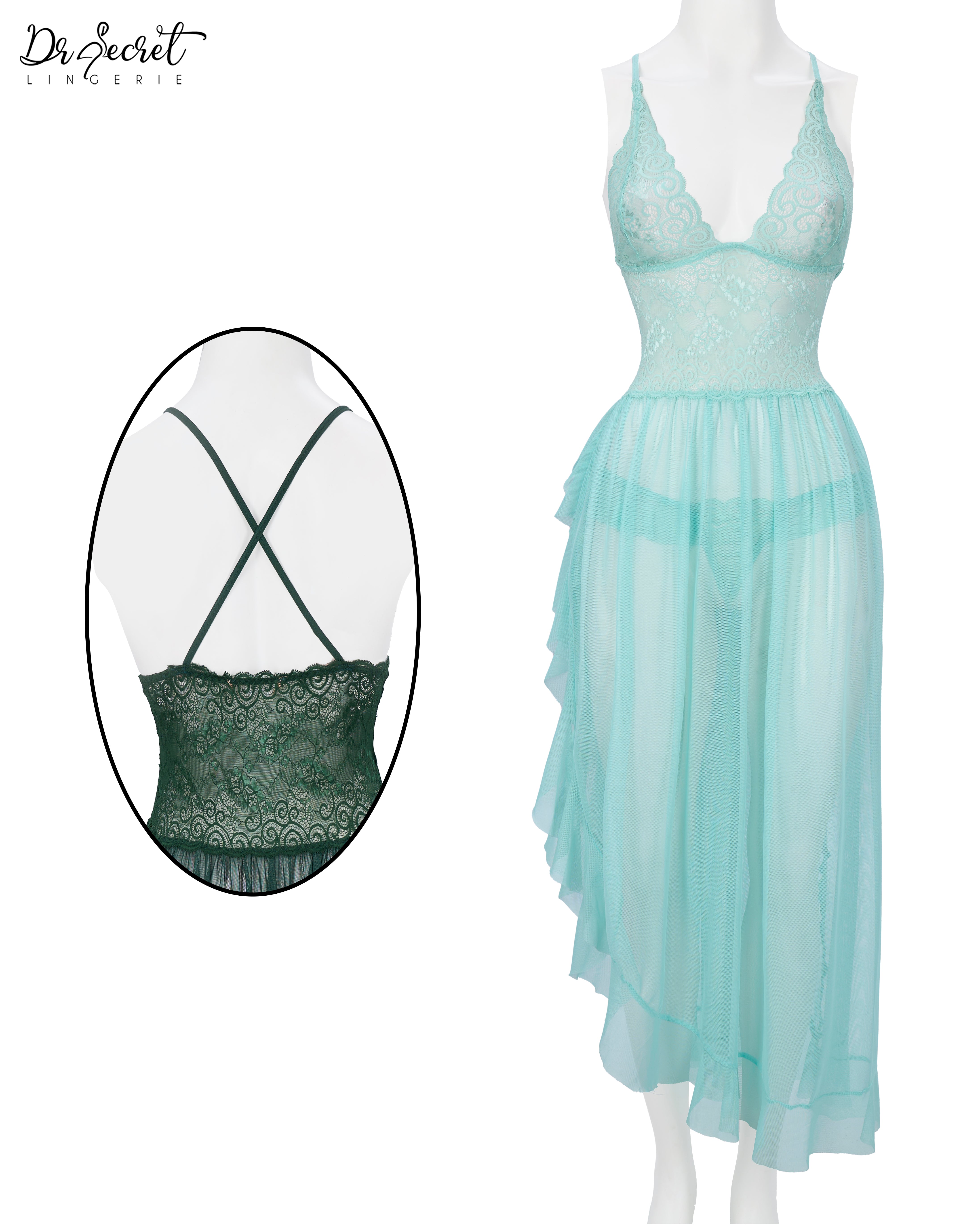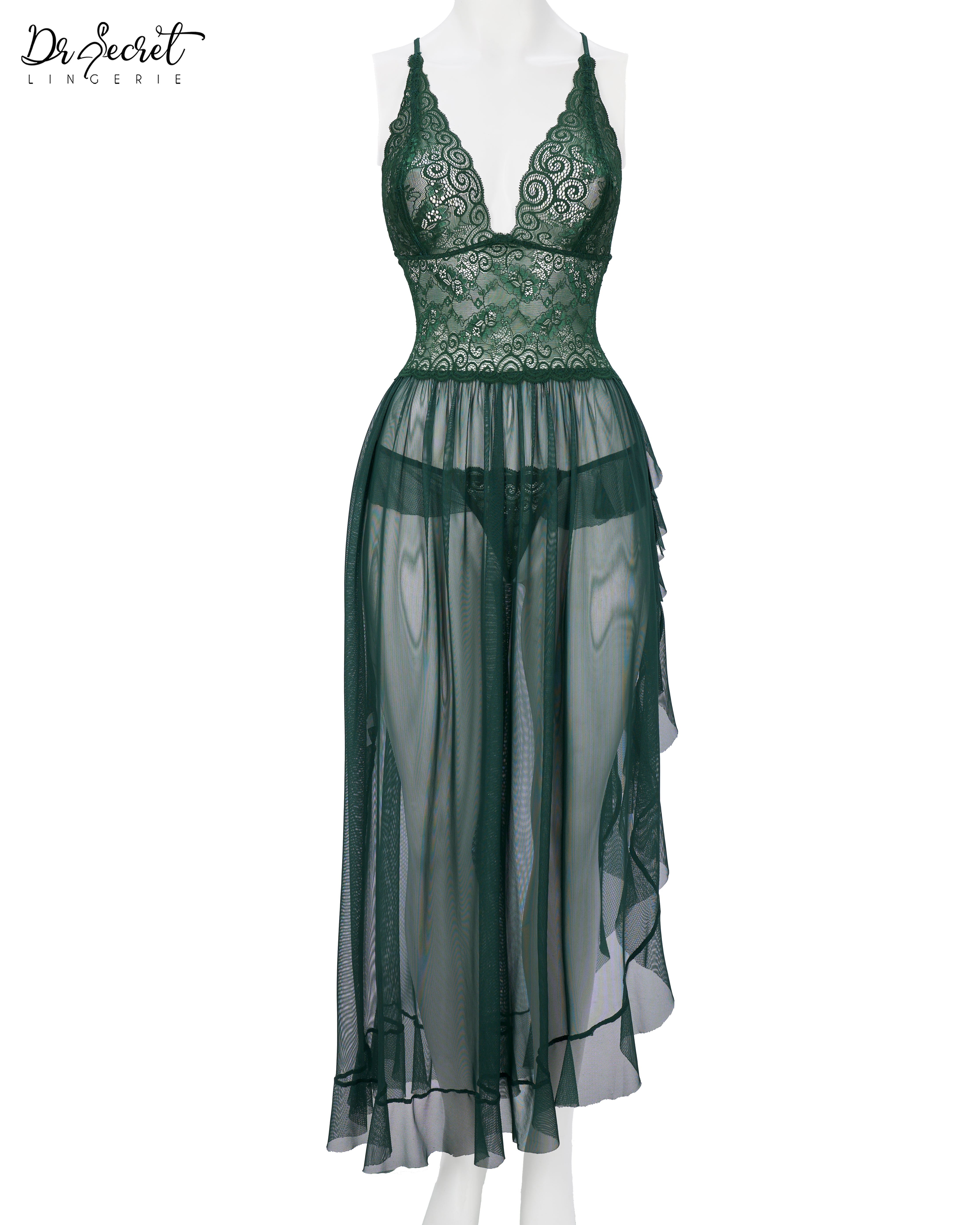 Powernet & Lace Nightgown | Ethereal Grace in Emerald